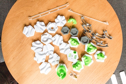 According to Ravensburger’s product description, this advent calendar contains building blocks for the Gravitrax marble run, including a festive gold marble. The calendar also contains codes that you can use to download tracks in the Gravitrax app. According to the manufacturer, «an understanding of science is sharpened and gravity can be experienced at first hand» by freely designing the marble run.