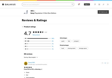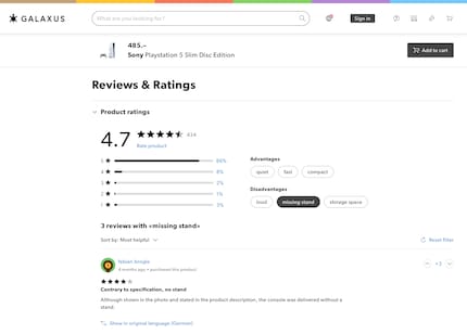 Galaxus and Digitec customers in Switzerland and the EU can now sort through reviews of a product and see frequently mentioned pros and cons as keywords.