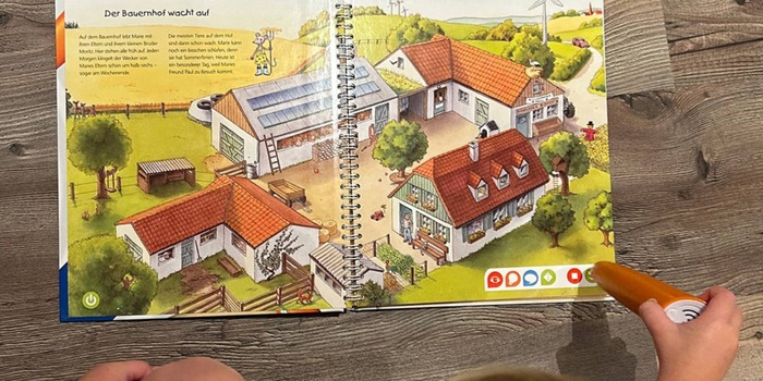 With the Tiptoi pen, which is recommended from the age of two, children can tap on pictures and texts. Stories, songs and other sounds are then played. Children can also record and play back their own ideas.