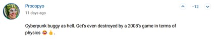 Procopyo, the melon-donning gentleman below, ridicules the bugs in Cyberpunk 2077 and gets downvotes for it. But how buggy is the expansion really?