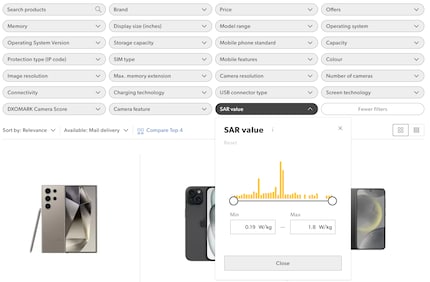 This is now changing at Galaxus and Digitec. We’re the first online store in Switzerland to use the Specific Absorption Rate (SAR) to show our customers how high the radiation exposure of each individual mobile phone is. It’s also possible to filter by this parameter.