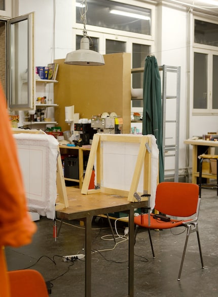 In my mind, tufting was a process that could be compared to knitting. But things move a little faster here. As soon as you press the trigger of a tufting gun, the machine takes off like a pimped car from 2 Fast 2 Furious. So stay on task, plan for breaks and remember that rhythm is just as much a part of the process as tufting itself. Otherwise your hair may get caught in the machine. Or you could hit the nails which attach the canvas to the frame. Both happened to me several times when I hadn’t yet found my rhythm.