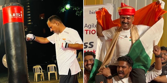 Indian software engineer breaks punching marathon world record on punching bag