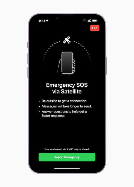 No additional software is needed, as Apple integrates the function into iOS. If you start the emergency call via satellite, the user interface asks a few questions so that the first message already receives as much information as possible. In order for the satellite text message to work, the iPhone must be aligned with it. But don't worry: the smartphone will give you the appropriate instructions.