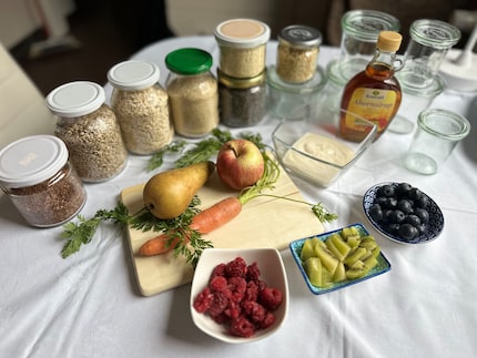 Overnight oats offer numerous health benefits. They’re a great source of fibre, protein and complex carbohydrates. This means the small breakfast keeps you full for a long time. The fibre it contains also promotes digestion and helps to keep blood sugar levels stable. Added fruit and berries as well as nuts and seeds provide an extra portion of vitamins, minerals and healthy fats.
