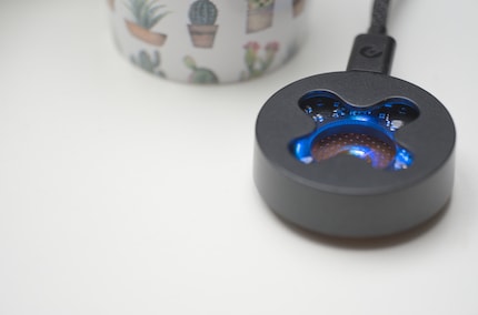 Swapping out the battery works surprisingly well. I get faster with a little practice, and it’s fun to do. The magnets are so strong that they cling tightly to the battery, keeping it nice and secure within the housing. It’s charged with a receiver for the 2.4 GHz connection, preventing potential interference from any USB 3.0 ports.