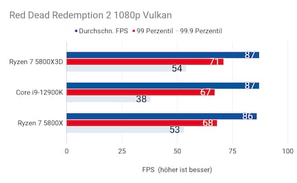 Here, the 5800X3D was almost on par with the 5800X. Compared to the 12900K, the new Ryzen differed by 63 per cent.