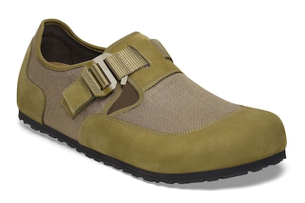 Both Birkis - as wearers like to call their favourite sandals - have been given a hard-wearing material upgrade: Tightly woven nylon is framed by tone-on-tone nubuck leather details, while the significant Birkenstock buckle has given way to a sporty G-hook. The footbed is, how could it be otherwise, made of cork-latex. The sole boasts EVA plastic and rubber tread as "equipped for trekking through any city". So nothing stands in the way of extended city trips and long summer days.