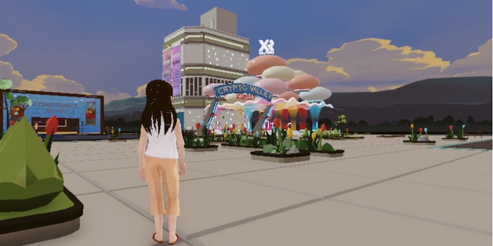 Next, I travel to Crypto Valley, where the bill says the opening talk will take place. I search in vain for a hint as to where exactly this panel is being held. Just as I’m feeling more like a boomer than ever at 27 years of age, cries for help from fellow sufferers pop up in the public chat window, all of them equally disoriented. «Where’s the panel?» they ask in unison. «On the rooftop terrace,» someone replies. «Where’s the rooftop terrace?» I follow up. Hospitable Metaversians direct me to the fourth floor, which is supposed to be accessible by elevator.