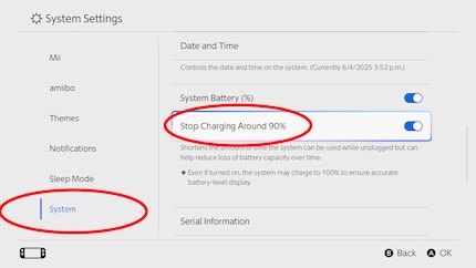 You can set your Switch 2 to never fully charge and instead sit at 90 per cent. Similar settings are also available on modern smartphones. Nintendo states that this option should help conserve the battery in the long term.