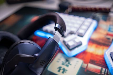 The best feature of the headset is its connectivity options. You can use it either wired via USB or a 3.5-millimeter headphone cable as well as Bluetooth 5.2 or a 2.4 gigahertz dongle. One cool thing: Bluetooth and the wireless connection via a dongle can be used simultaneously. So you can game and listen to music via your smartphone at the same time. If a call comes in, any audio will automatically pause.