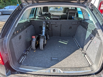 As a result, you can stow or transport the e-scooter without taking up much space. Folded into a cube, the scooter only measures about 60 by 30 centimetres, and is 60 centimetres tall.
