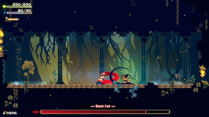 What’s this black cat doing in a forest teeming with monsters? And what happened to her covered eye? Momo, high priestess of the village of Koho and my in-game character, wonders the same thing. In response to this loudly formulated question, the cat turns into a woman and attacks me. An intense battle ensues. The first that actually challenges me after more than one (out of ten) hours of playtime.