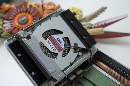 Mi piace particolarmente il fatto che basta svitare una sola vite sul lato inferiore per avere accesso immediato ai componenti. Posso sostituire la RAM e l'SSD in modo semplice e veloce. Sono supportati fino a 96 gigabyte (GB) di RAM DDR5-6400 C-SODIMM o DDR5-5600 SODIMM. Il Mini PC dispone inoltre di due slot M.2 per le unità SSD, uno per PCIe 5.0 e uno per PCIe 4.0. Quest'ultimo si adatta solo a quelli con fattore di forma 2242.