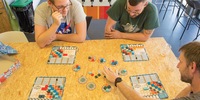 Perché è così bello, abbiamo giocato anche al "Kluster" originale. Lo stesso principio, ma con 24 magneti più piccoli e piatti e per un massimo di quattro persone. Questa versione è consigliata solo a partire dai 14 anni. Perché? "Perché molte persone iniziano a imprecare quando sbagliano", ipotizza il più giovane del gruppo. Bella teoria, ma dovrebbe valere anche per il "Kluster Duo".