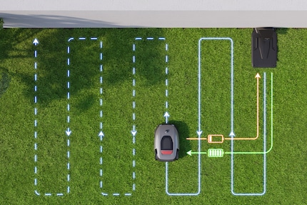 Il Roboticmower non si limita a percorrere il prato senza meta, ma pianifica percorsi a forma di U per tagliare l'erba in modo uniforme e preciso. E lo fa su un'area fino a 2.000 metri quadrati e a un'altezza di taglio compresa tra i tre e i sette centimetri.