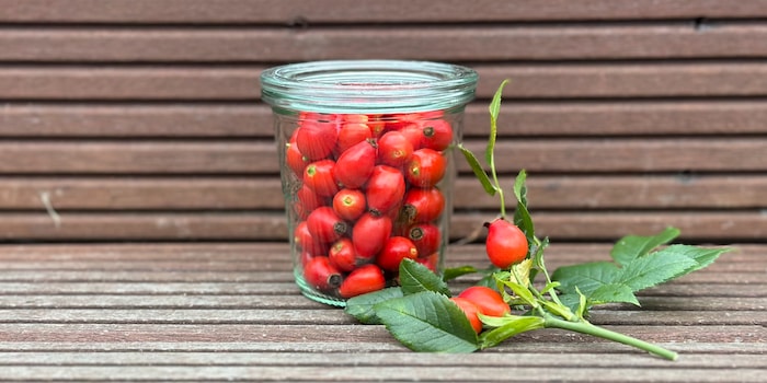 Il mio giardino è una sorta di buffet selvaggio di piante autoctone che possono diffondersi a piacimento e che, tra l'altro, costituiscono un paradiso ecologico per molti animali selvatici. Tuttavia, non sono solo gli animali a beneficiare dei frutti, anche io raccolgo tesori nella piccola natura selvaggia, in qualsiasi momento dell'anno. In autunno spiccano i frutti di una pianta in particolare: la rosa canina del cespuglio di rose selvatiche.