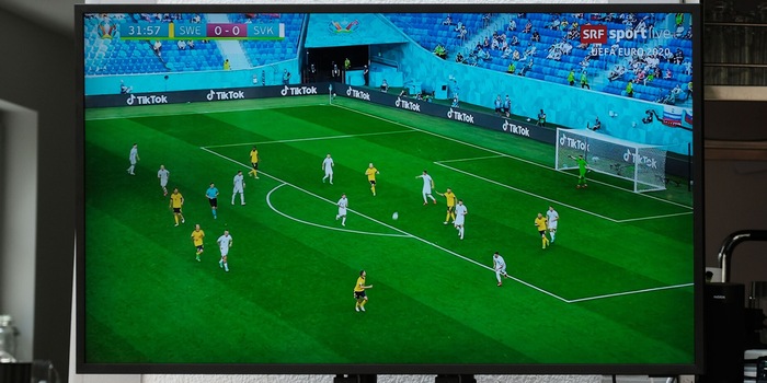 Zugegeben: Für einen objektiven TV-Test bin ich der Falsche. Ich schaue noch immer auf einem 10-jährigen 46-Zoll Fernseher der Marke Toshiba fern. Der hat Full HD und ein paar HDMI-Anschlüsse und liesse sich wohl irgendwie ins LAN integrieren, was aber nichts bringt, da es weder Apps noch Internet-TV gibt auf dem Gerät. Die Helligkeit ist mit 450 Nits angegeben, was für einen LED-TV ohne HDR anständig ist. Für die EM-Bar wäre mein Uraltmodell trotzdem unbrauchbar.