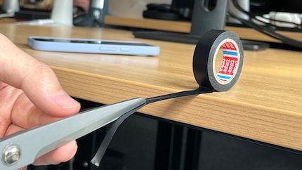 Non ho trovato il mio salvatore in un negozio di accessori di lusso, ma nell'assortimento dei negozi di bricolage. Per la precisione: Nastro isolante elettrico Tesa, un semplice nastro per cavi opaco. È sottile, leggermente elastico, non ruvido o irto come nastro antiscivolo e comunque sorprendentemente aderente. Ma non deve essere necessariamente Tesa se preferisci un altro marchio. Ed ecco come funziona.