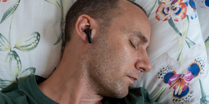 I requisiti sono quindi bassi. L'ergonomia e il comfort sono più importanti. Ecco perché abbiamo iniziato a cercare auricolari specifici per il sonno. Tuttavia, né la fascia né la maschera per il sonno sono riuscite a soddisfare i bassi requisiti. Ecco perché siamo tornati alle cuffie classiche.