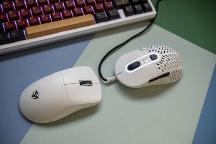 Entrambi i mouse hanno degli alianti realizzati in PTFE, meglio noto come Teflon. Nel caso della montagna, ce ne sono due, semicircolari davanti e dietro sul lato inferiore. Il ninja ha un aliante in più nella parte posteriore. Contrariamente al suo carattere «più radicato», la montagna si muove in modo sorprendentemente agile. Ma il ninja è ancora più agile e scivola meglio, soprattutto lateralmente.