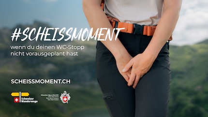 Con la campagna #ScheissMoment, il Club Alpino Svizzero CAS e l'Associazione Sentieri Svizzeri puntano sulla comunicazione diretta con una strizzatina d'occhio alla tutela dell'ambiente. Sia che si tratti di utilizzare i servizi igienici esistenti in montagna o di evitare di lasciare i rifiuti in prossimità di specchi d'acqua. O semplicemente dicendo agli escursionisti di portare con sé la carta igienica usata e di smaltirla a valle.