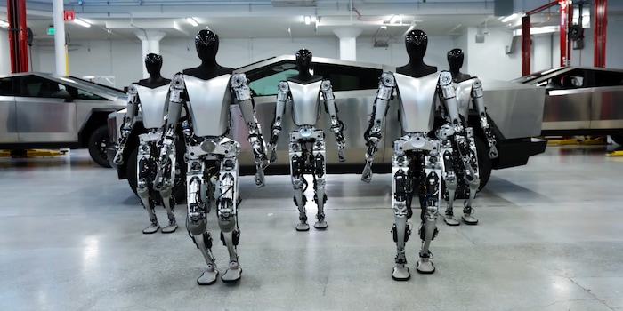 Un nuovo video mostra per la prima volta i robot Tesla camminare insieme a passo spedito. Il robot umanoide ora è anche più bravo a raccogliere gli oggetti.