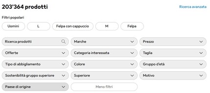 Per molti tipi di prodotto è disponibile anche un filtro per il Paese di origine. Stiamo costantemente ampliando questo servizio per includere altri tipi di prodotto.