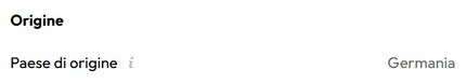 Se conosciamo l'origine di un prodotto, troverai questa informazione nelle specifiche: