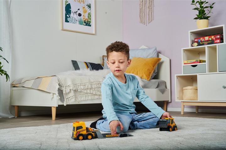 "Dickie Toys - Volvo Truck Team - grande camion giocattolo con rimorchio e pala gommata, con effetti luminosi e sonori, a ruota libera, per bambini dai 3 anni - Via al cantiere - Guardare i veicoli da costruzione è assolutamente affascinante per molti bambini. Con il set Volvo, i piccoli possono ora diventare loro stessi operai edili. - Camion con rimorchio - La squadra alta 32 cm porta al prossimo cantiere un carico emozionante: una vera pala gommata. Può alzare e abbassare la sua benna al tocco di un pulsante. Eccitante. - Con luce e suono - Per rendere il gioco con il veicolo pesante ancora più realistico ed eccitante, il camion giocattolo offre vari effetti di luce e suono (2x pile a bottone da 1,5V incluse). - A partire da 3 anni - Il camion e la pala gommata sono perfettamente adatti a bambini e bambine a partire da 3 anni. Un regalo ideale per tutti gli appassionati di escavatori e camion per Natale, compleanno o Pasqua. - A proposito di Dickie Toys - Il marchio di veicoli per bambini. Abbiamo sempre un obiettivo in mente: mettere un sorriso sui volti dei bambini. Basta disimballare e lasciare che il divertimento cominci. Il Dickie Toys Volvo Truck Team - ora è il momento di scavare. Gioco divertente per interni o esterni - con il team di giocattoli di Dickie Toys, i grandi modelli di ruolo Volvo possono ora trasferirsi anche nelle stanze dei bambini a casa. I colori vivaci e i grandi dettagli fanno battere il cuore dei bambini. Arricchite il mondo immaginativo dei vostri cari a casa. Al lavoro. Il camion lungo 32 cm porta una vera pala gommata Volvo (9 cm) sul suo caricatore basso. La sua ruota libera lo rende facile da spostare e arriva sicuro al cantiere. La sua pala può essere spostata su e giù molto facilmente con la semplice pressione di un pulsante - così nessun carico viene perso. Una volta in cantiere, la pala viene semplicemente inclinata e in pochissimo tempo i vostri laboriosi operai possono ammassare enormi montagne di fantasia. Gli effetti di stile rendono l'esperienza di gioco completa.